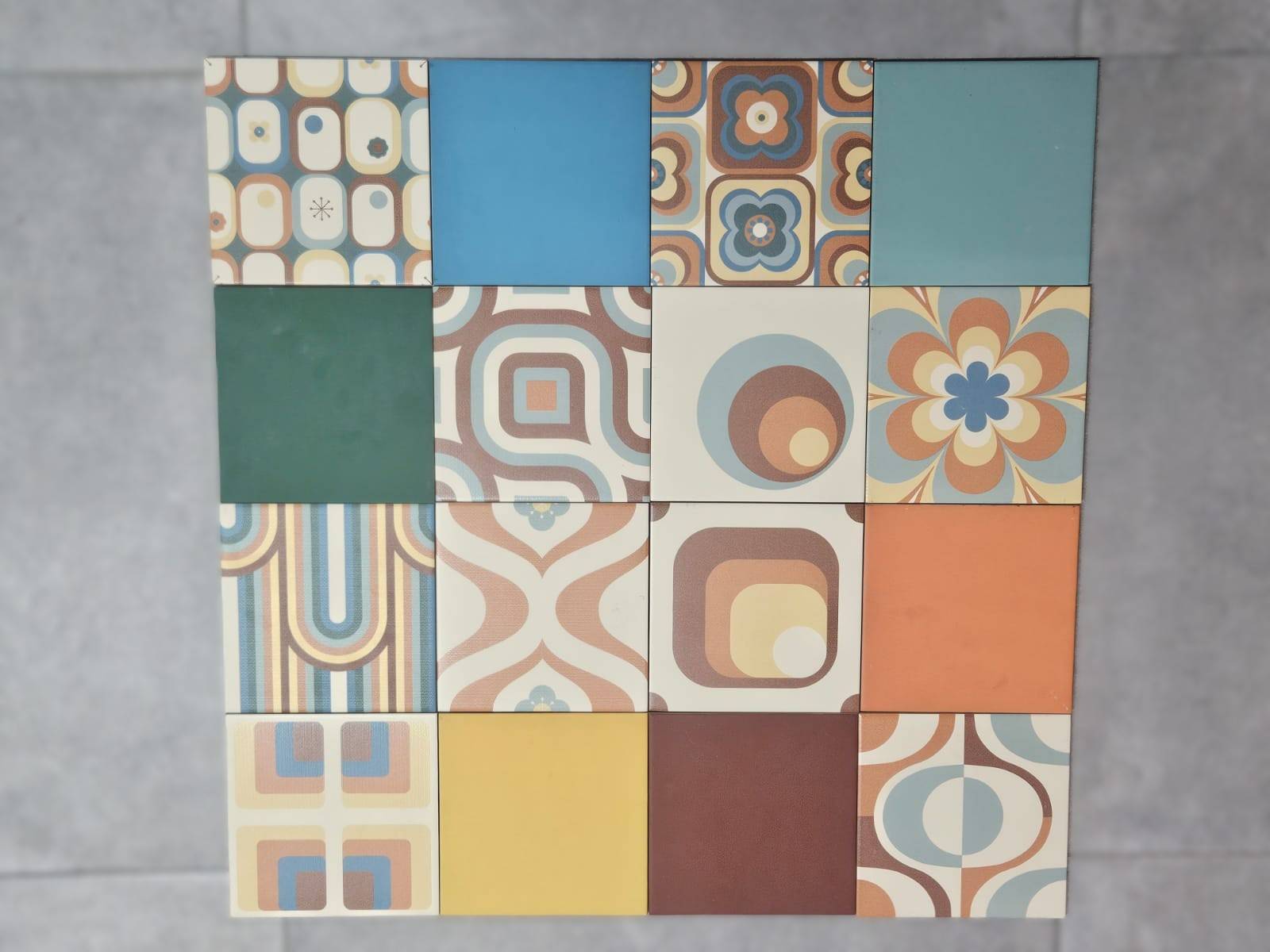 ous recherchez un carrelage décoratif à Saint-Maximin-la-Sainte-Baume capable d’apporter du caractère, de la couleur et une vraie identité visuelle à vos espaces ? Ce carrelage en grès cérame format 20 × 20 cm s’inspire directement de l’esthétique des années 70, avec des motifs graphiques forts et une palette de couleurs franches et lumineuses.