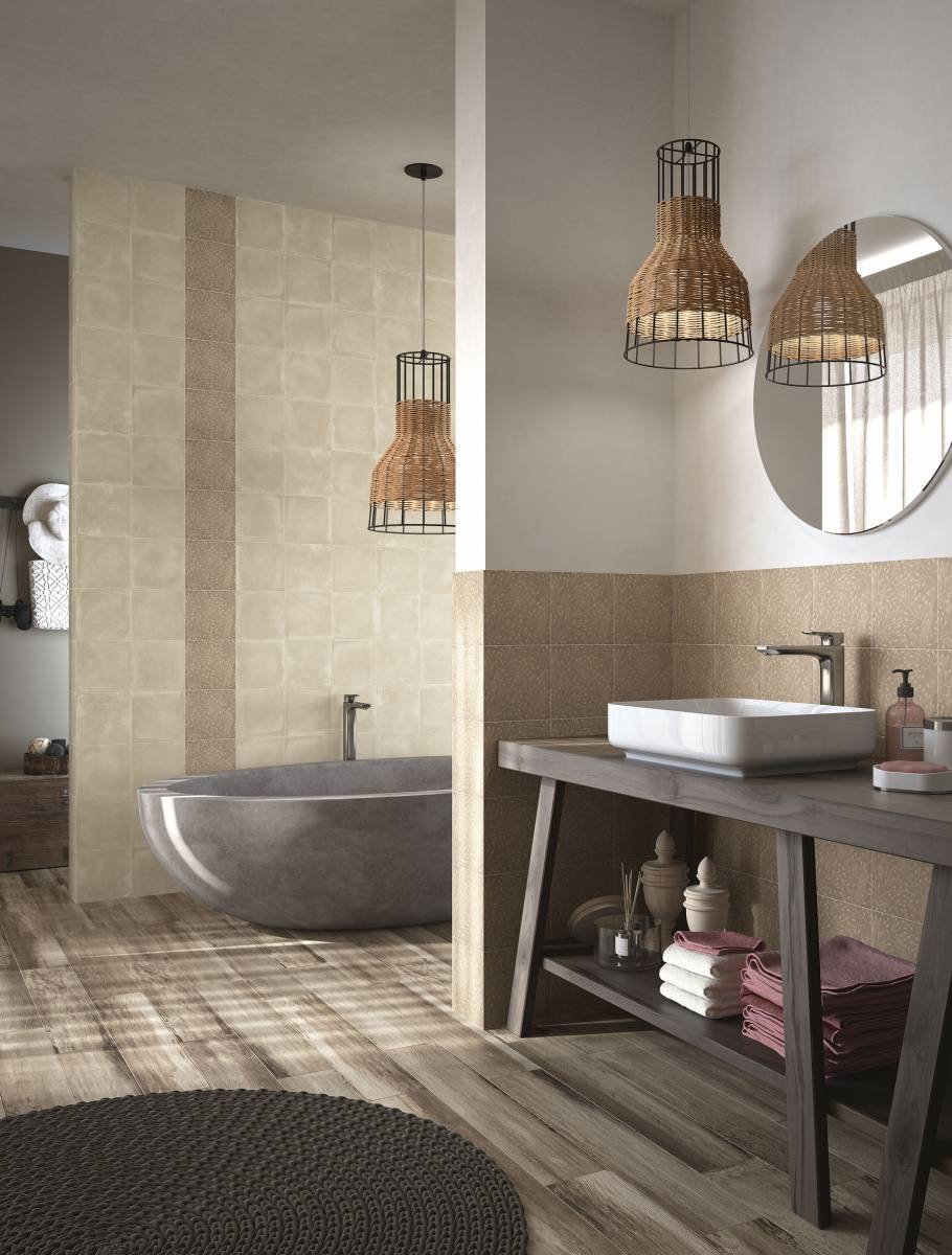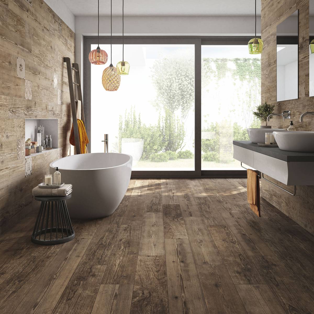 Le carrelage effet bois dans les salles de bain se pose soit au mur soit au sol pour une harmonie parfaite et une décoration zen et tendance.