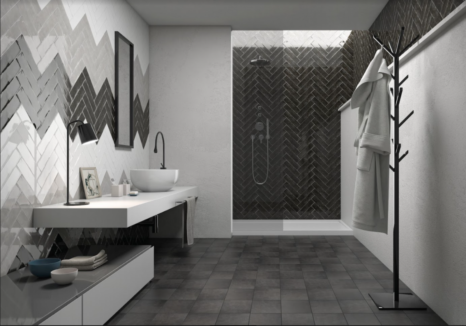 Pour une pose de Faïence originale, noire, blanche, colorée, mate ou brillante, découvrez notre gamme de Carrelages adaptés à la pose en Chevron.