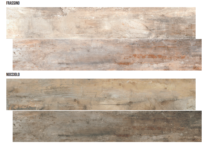 Carrelage imitation bois vieilli antidérapant Nocciolo : brun noisette chaleureux, pour une ambiance naturelle et boisée