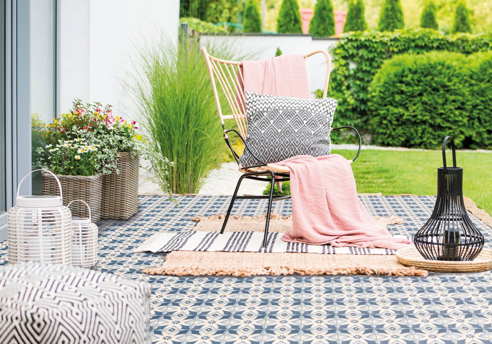 Le carrelage imitation carreaux de ciment en Grès Cérame est facile d'entretien. Il peut être posé au sol comme au mur, à l'intérieur comme sur une terrasse, car il est non gélive (résistant au gel).