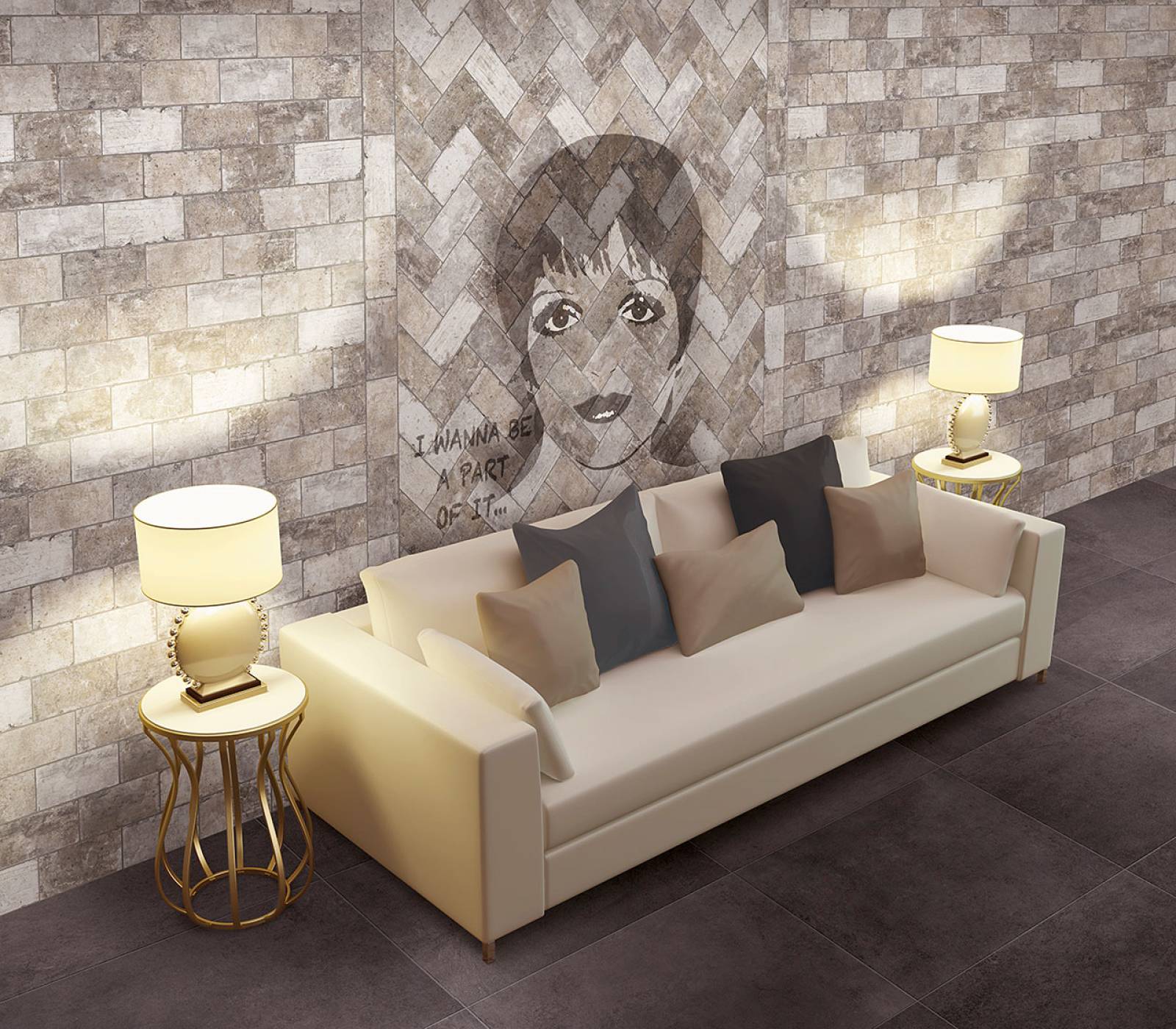 Le carrelage effet Brique s'accorde parfaitement à un carrelage imitation bois au sol pour un rendu chaleureux et rustique ou encore à un carrelage effet béton pour un style plus industriel.