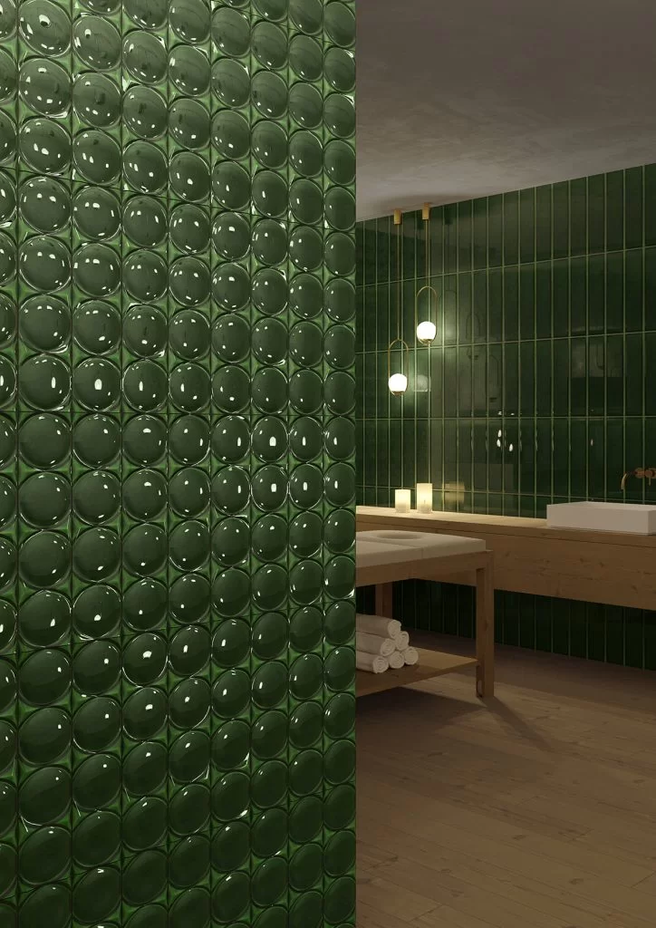 Direct Matériaux propose une collection élégante en 11,25 × 45 cm, composée de 4 reliefs décoratifs et disponible en 8 couleurs profondes. Grâce à sa finition brillante et ses reliefs 3D, ce carrelage apporte immédiatement un style haut de gamme à n’importe quel mur de salle de bain : crédence, paroi décorative, niche, zone lavabo ou douche hors sol.