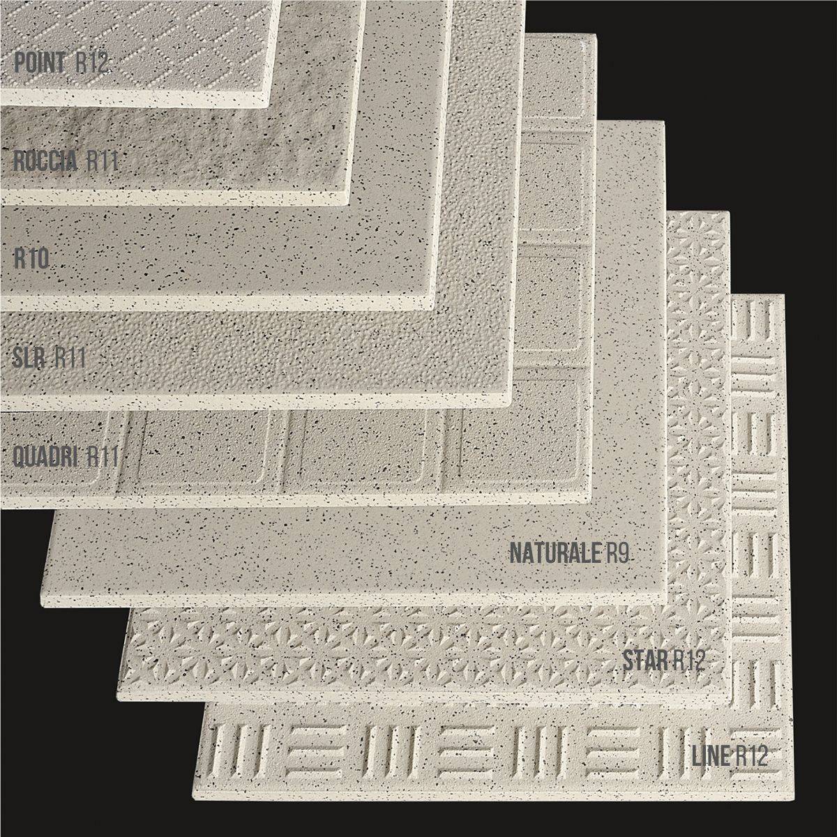 Corps teinté pleine masse (UGL), faible absorption d’eau, marquage CE, essais EN ISO 10545.