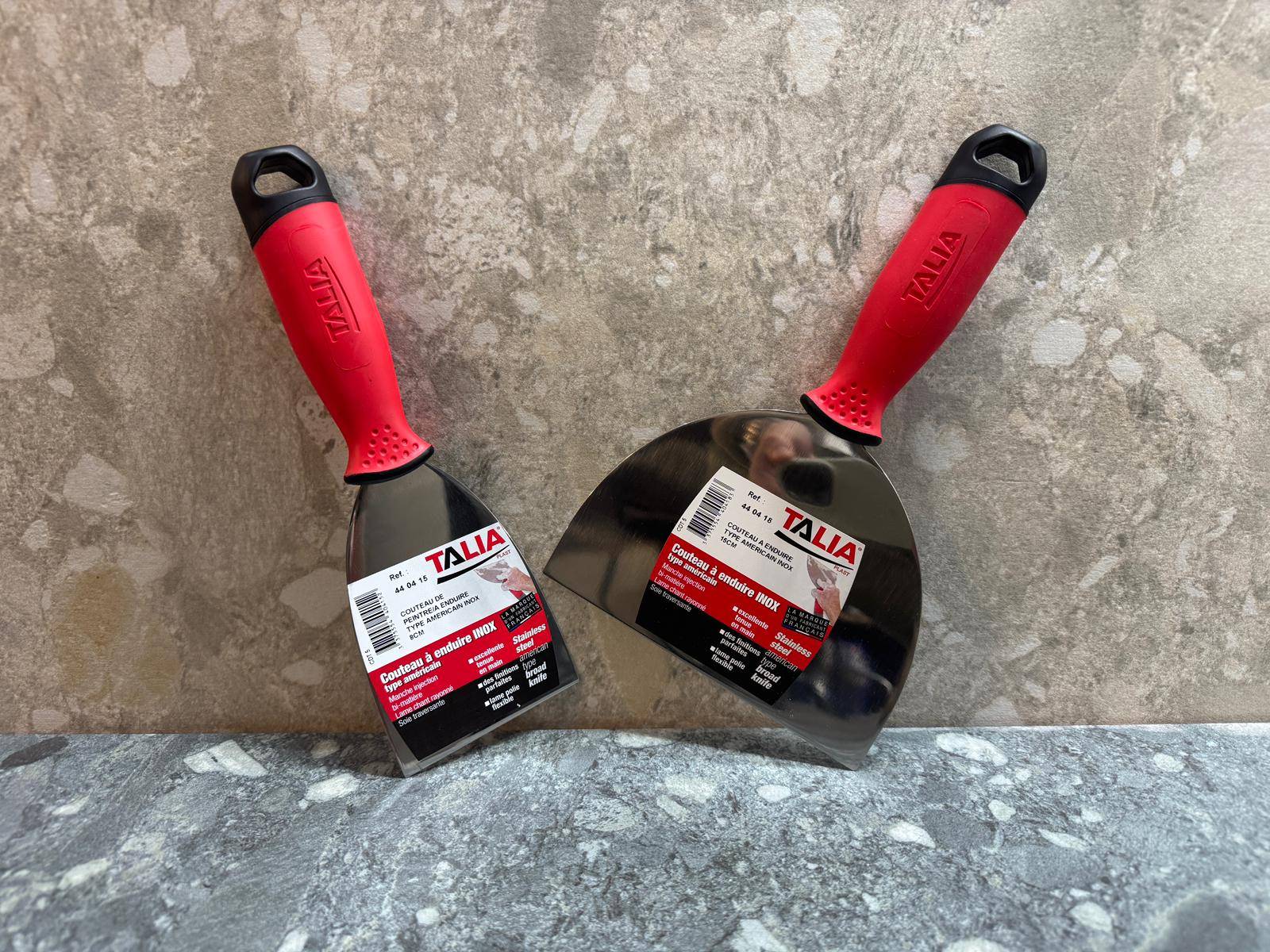 Astuce pro : pour une finition parfaite, combine un couteau américain pour charger et un couteau inox rigide pour lisser : résultat net et propre, sans marques.