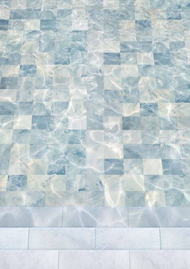La finition sablée apporte à cette pierre naturelle un rendu antidérapant très apprécié en bord de piscine ou plus généralement en extérieur. Le sablage de la Pierre floute les veines du marbre ce qui lui confère un rendu visuel qui évoque les nuages ou le mouvement des vagues.