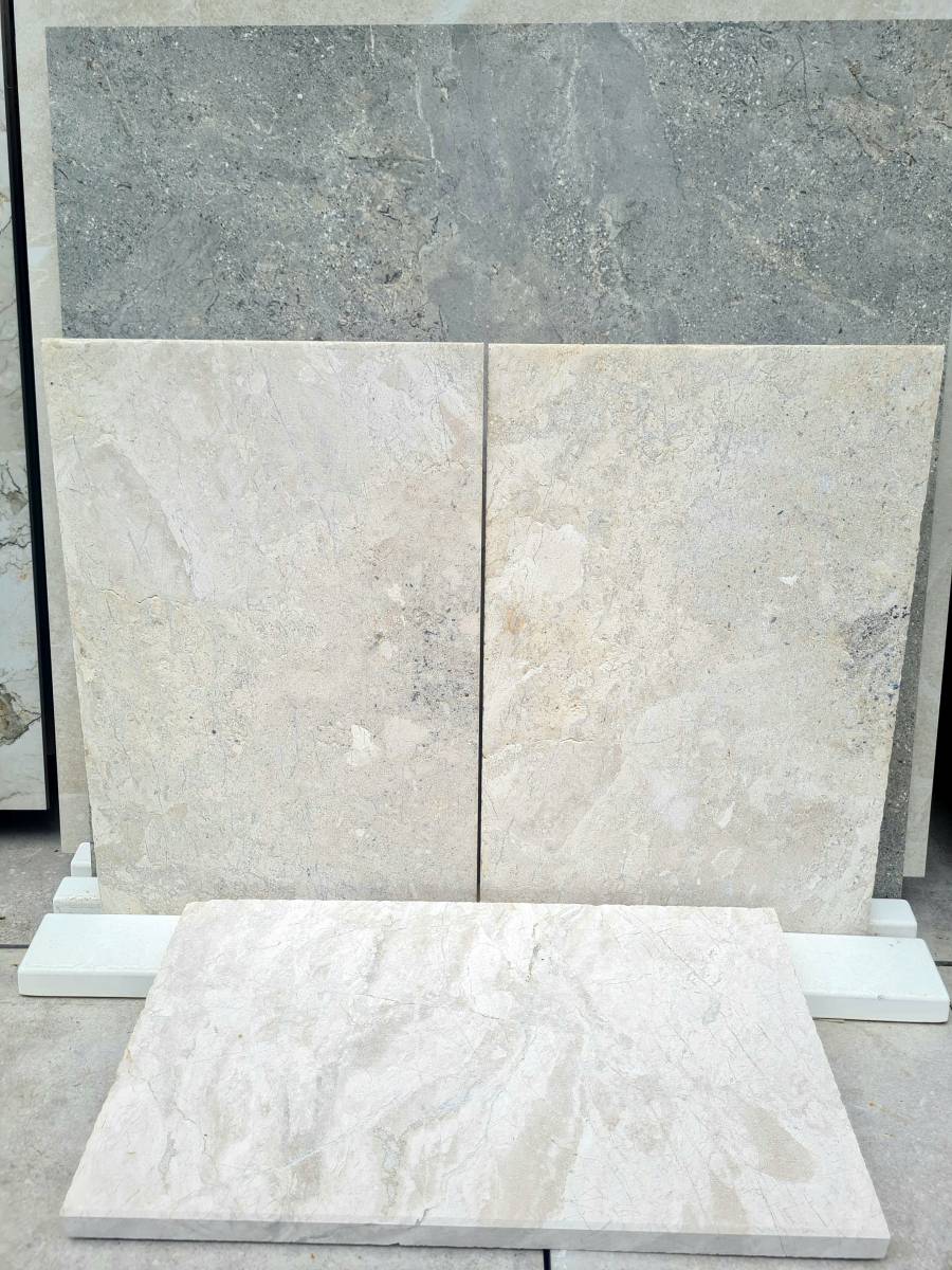 Sa finition sablé brossé allie esthétique et confort : le sablage donne une texture légèrement rugueuse pour plus de sécurité, tandis que le brossage adoucit la surface pour un rendu soyeux. Cette finition met en valeur la couleur et la structure du marbre tout en étant agréable sous les pieds, même pieds nus.