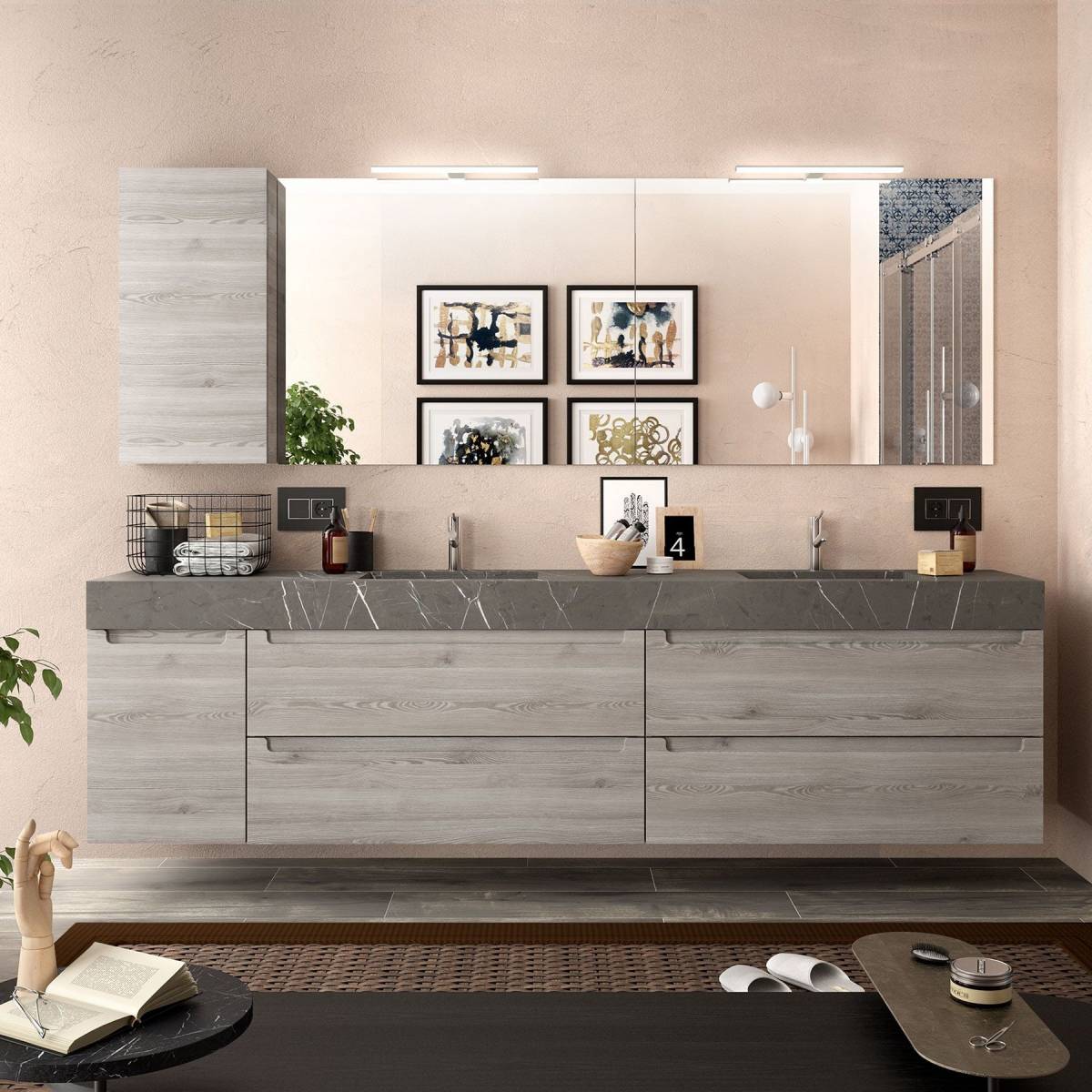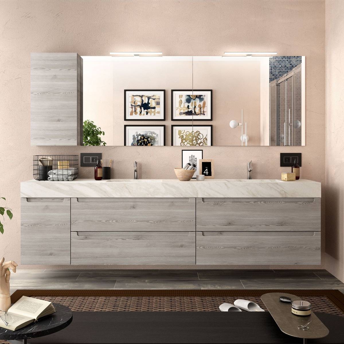 Chez nous, vous pouvez venir concevoir votre meuble double vasque, choisir les différentes finitions, vasques à poser, vasques à encastrer, poignées de tiroirs, facades de tiroirs, mitigeurs, mélangeurs, meuble de salle de bain suspendu... Tout est possible.