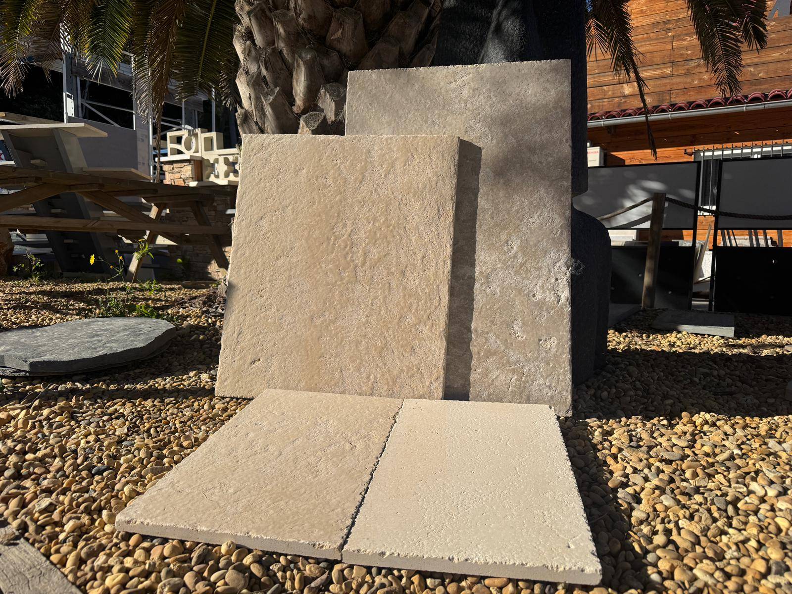 Chaque dalle est travaillée avec soin dans les carrières françaises, selon un savoir-faire artisanal. Vieillie manuellement, elle présente des bords irréguliers et une surface subtilement patinée, pour un rendu unique et chaleureux.