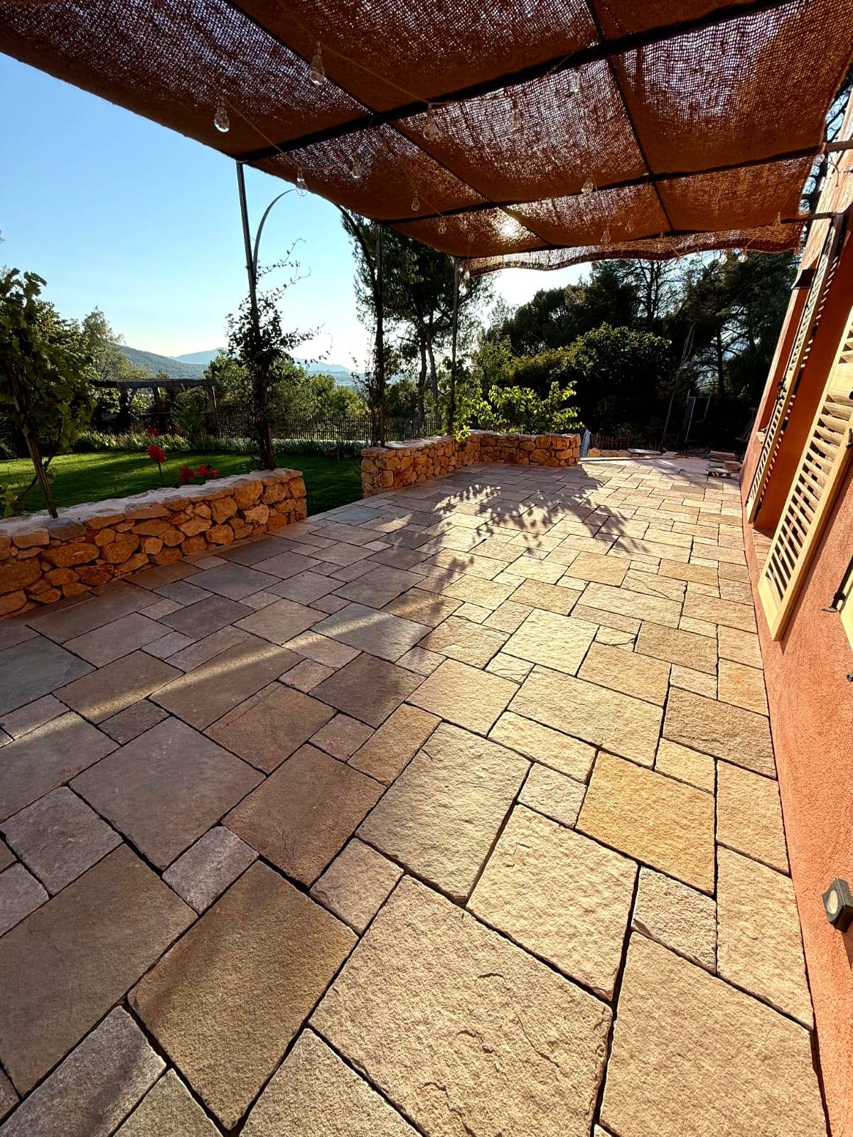 Opus romain en pierre naturelle Marrakech multiformats à Marseille la Valentine : parfaits pour les rendus aléatoires traditionnels sur terrasses ou patios.