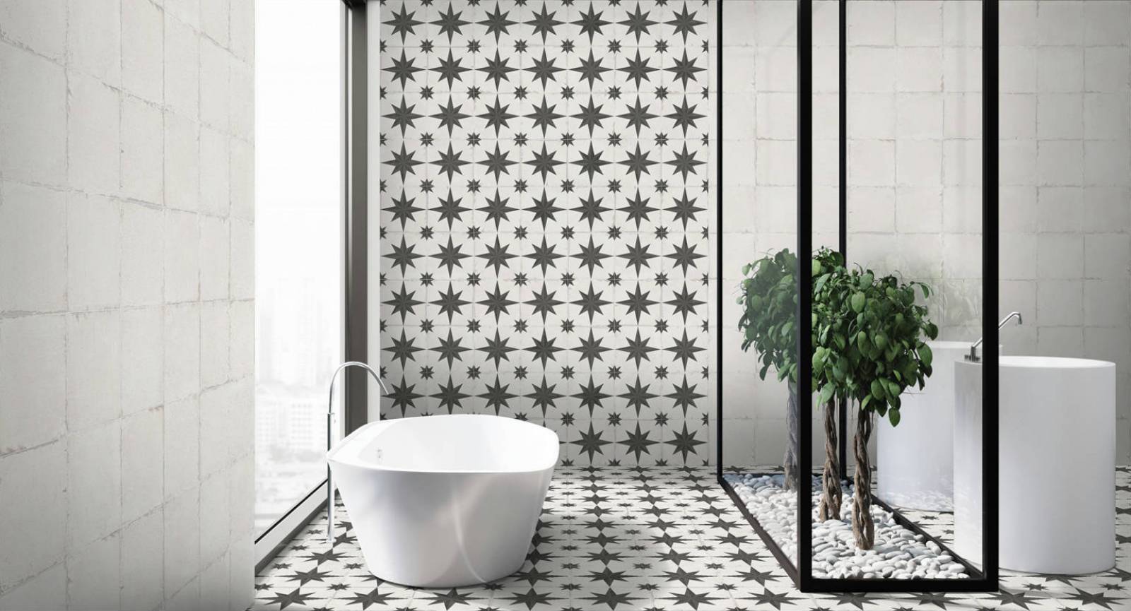 le carrelage inspiration géométrique donnera un style unique à votre salle de bain. Direct Matériaux propose