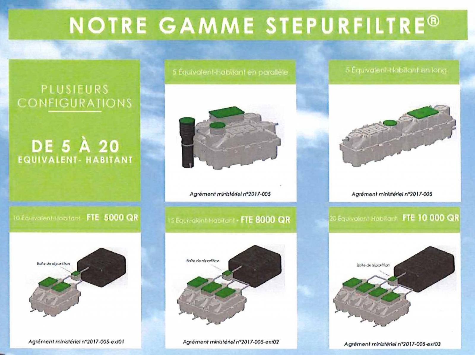 Les dispositifs de traitement STEPURFILTRE sont destinés à traiter vos eaux usées domestiques et/ou assimilées par procédé écologique et répondant à l’agrément ministériel 2017-005.