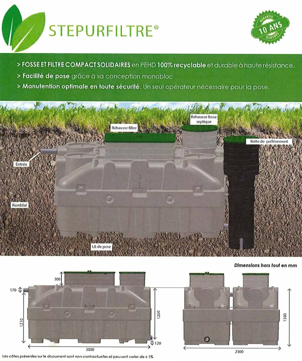 Chez DIRECT MATERIAUX, en choisissant une fosse et filtre compact solidaire STEPURFILTRE; vous optez pour une qualité de rejet et le respect de l’environnement.