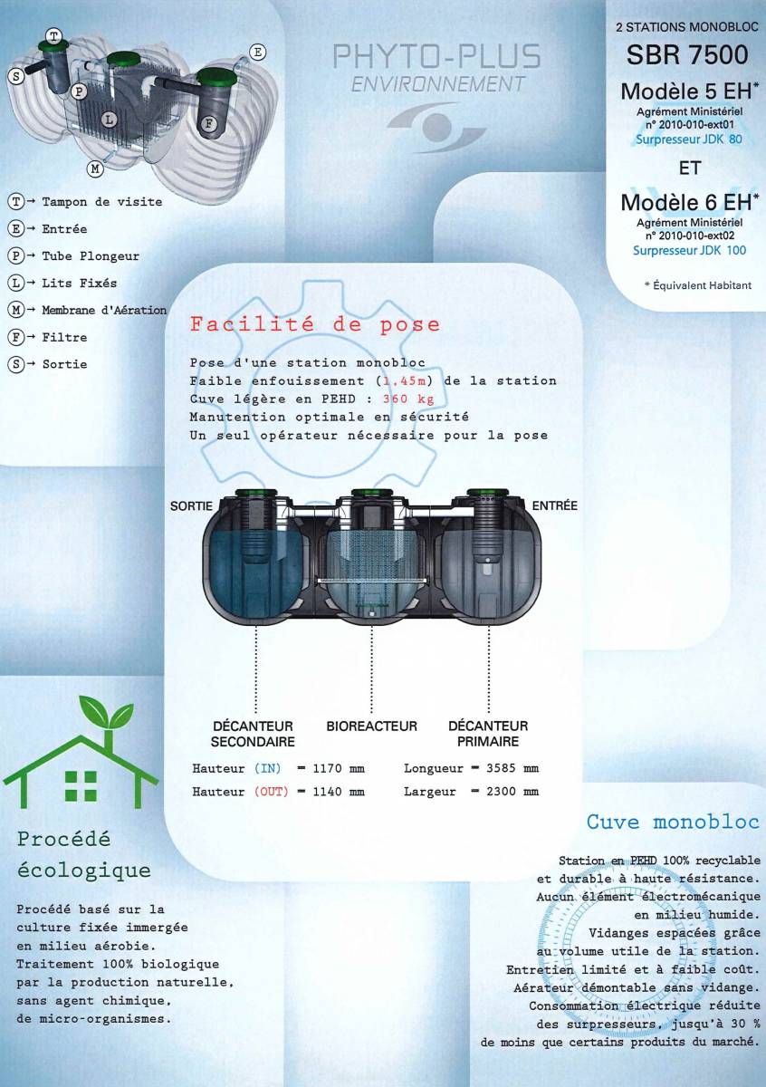 Les dispositifs de traitement STEPURBIO (CF 2593 et CF 3242) sont destinés à traiter vos eaux usées domestiques et/ou assimilées par procédé écologique et répondant au R.214-5 du code de l’environnement.